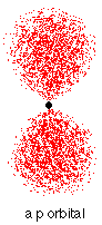 A p orbital is rather like 2 identical balloons tied together at the nucleus. The diagram on the right is a cross-section through that 3-dimensional region of space. Once again, the orbital shows where there is a 95% chance of finding a particular electron.